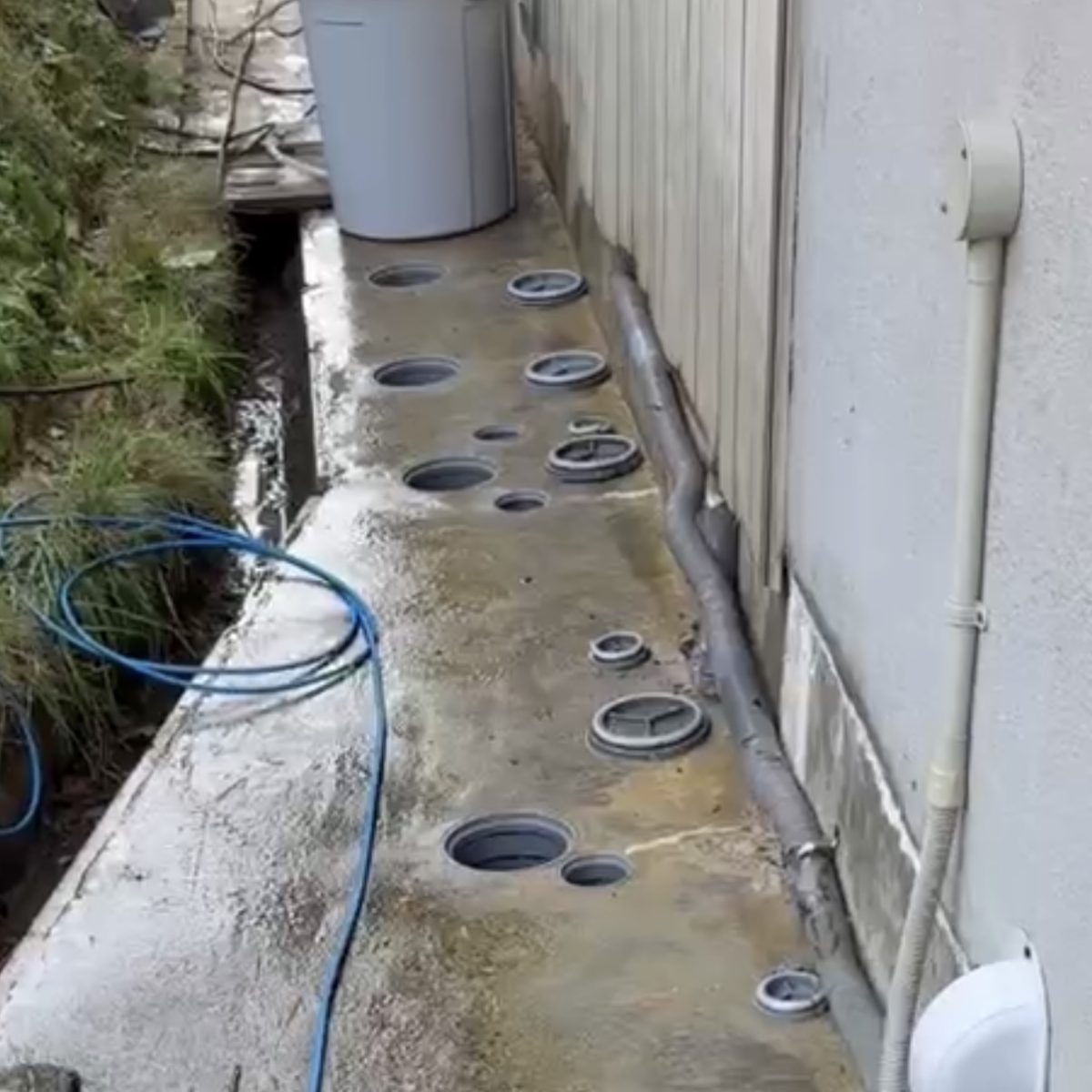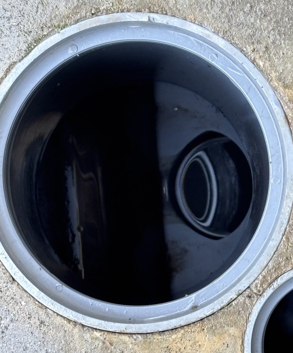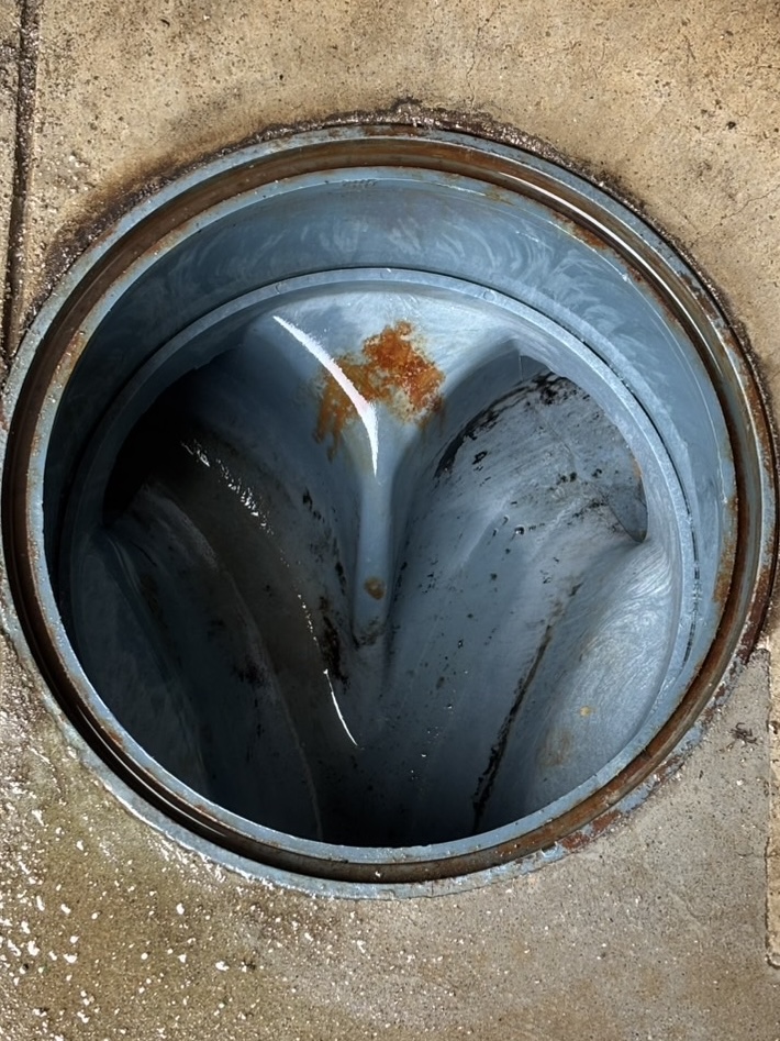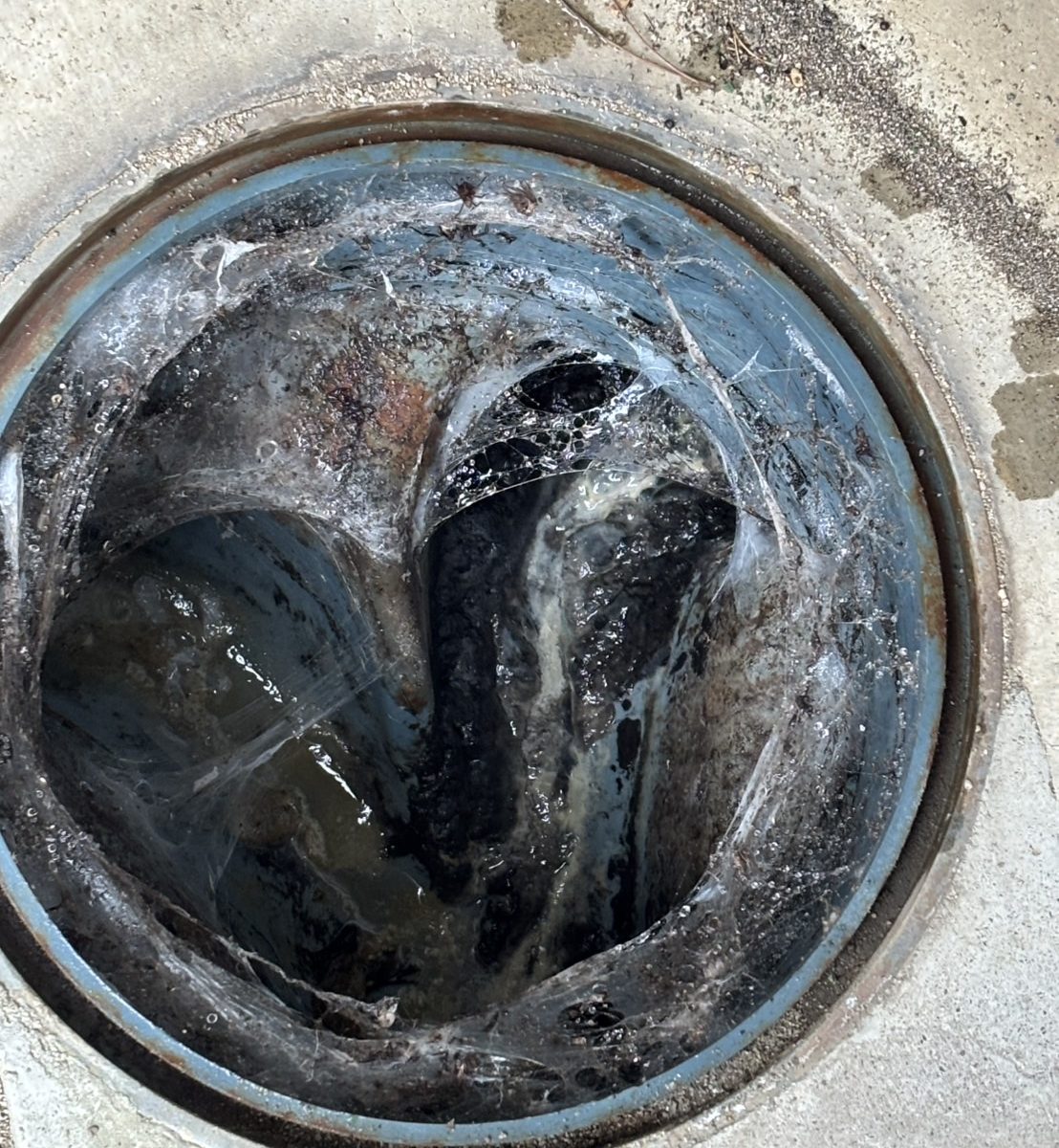 屋外の排水管内に汚れが溜まり、