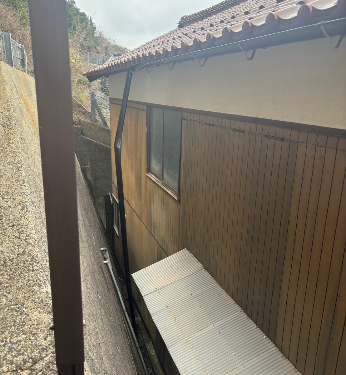 今回の現場は建物と擁壁に挟まれた、
