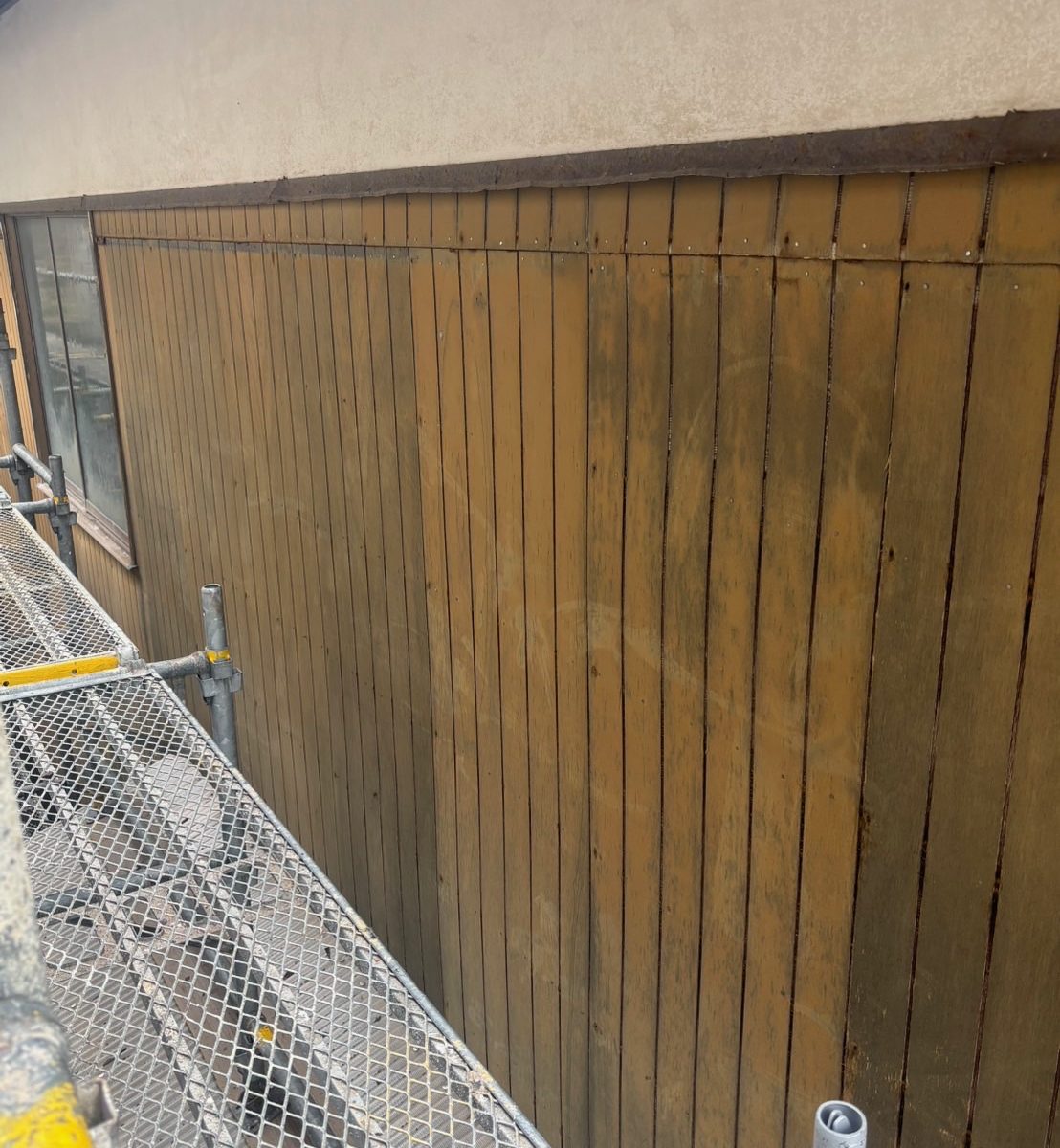 足場の組み立てから一苦労でしたが、