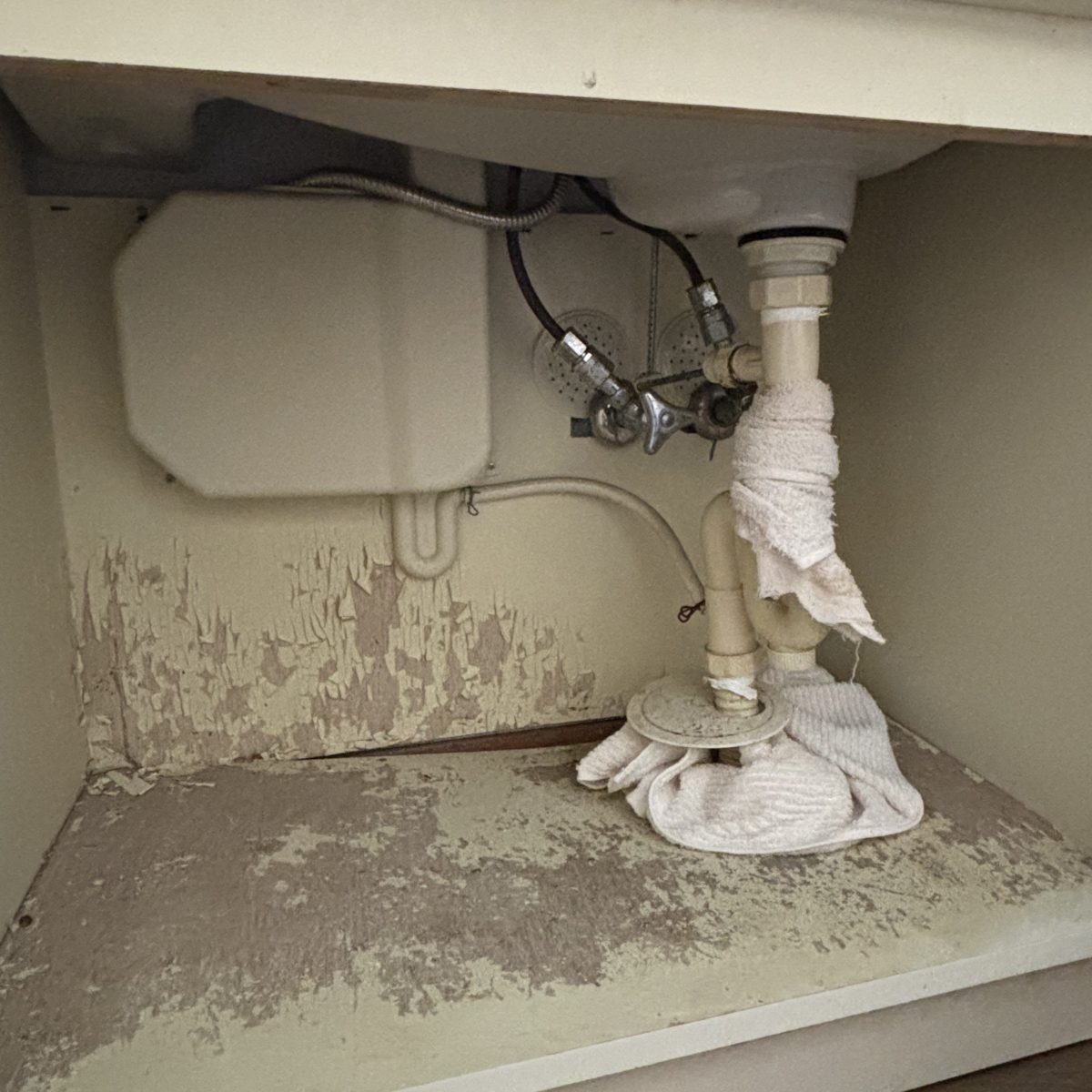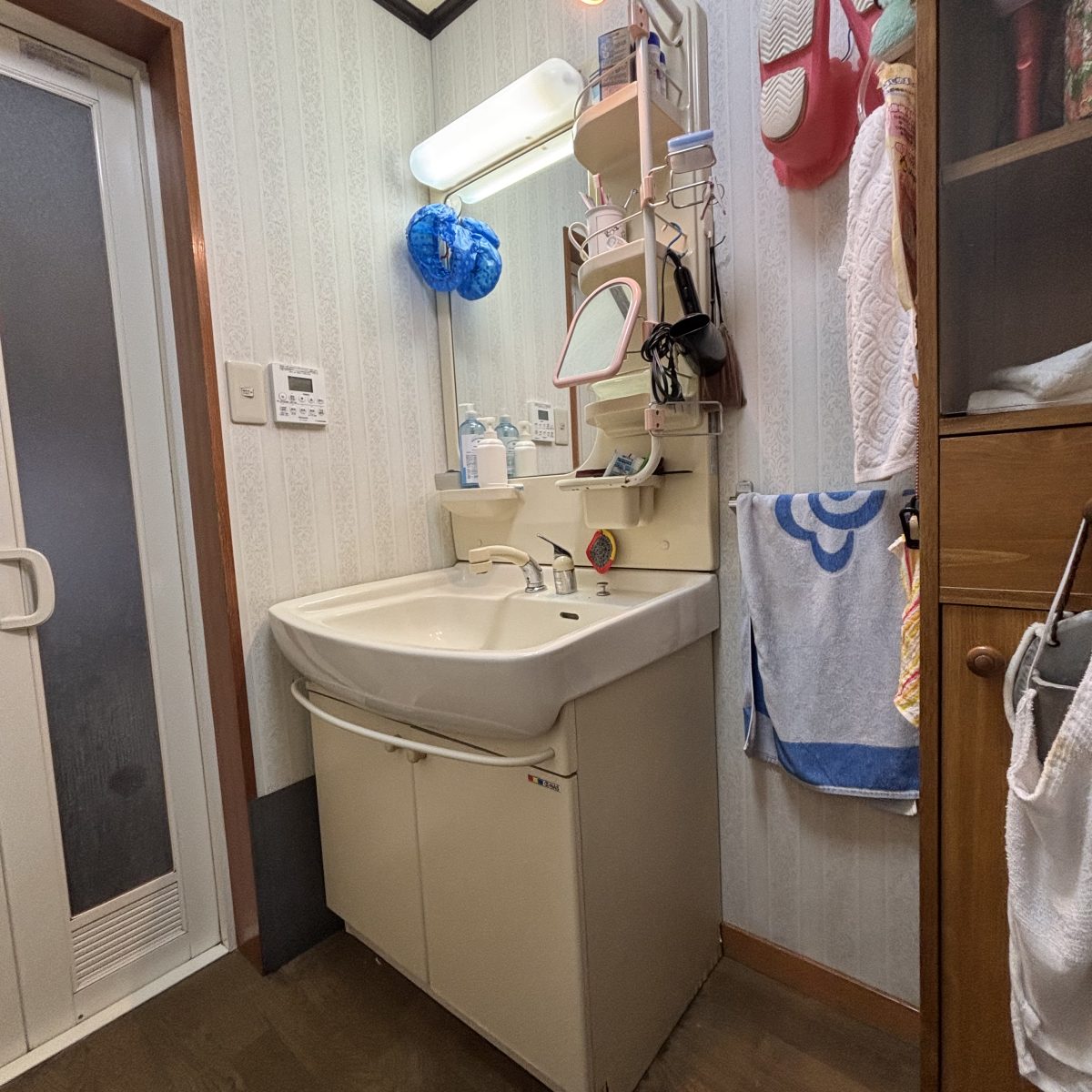 あけましておめでとうございます、今年の初仕事は洗面台交換工事です。35年間お使いになられ床台もおちていました。長い間本当にお疲れ様でした。